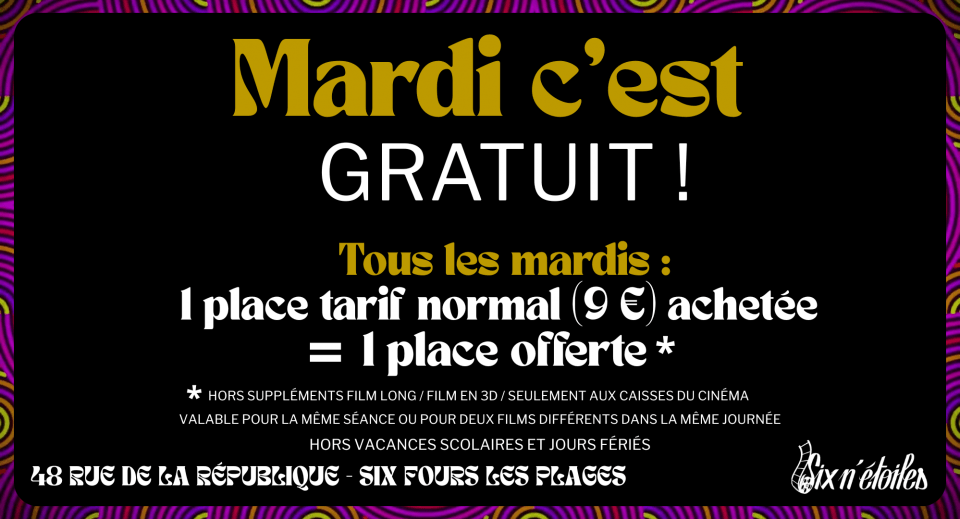 Cinéma Six n'étoiles, 48 Rue de la République 83140 Six-Fours | Mentions légales | Contact | Confidentialité | Tel : 04 94 26 58 48