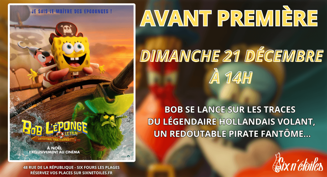 Bien décidé à prouver à M. Krabs qu’il est désormais un grand garçon, Bob se lance sur les traces du légendaire Hollandais Volant, un redoutable pirate fantôme. Cap sur une épopée déjantée, entre fous rires, frissons et péripéties sous-marines, jusque dans les abysses les plus mystérieux de l’océan — là où aucune éponge n’a jamais osé plonger !Genre : Animation, Comédie, Familial, Aventure
