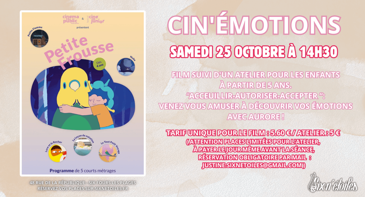 N'hésitez pas à réserver vos places pour l'atelier par mail, à l'adresse suivante : justine.sixnetoiles@gmail.com